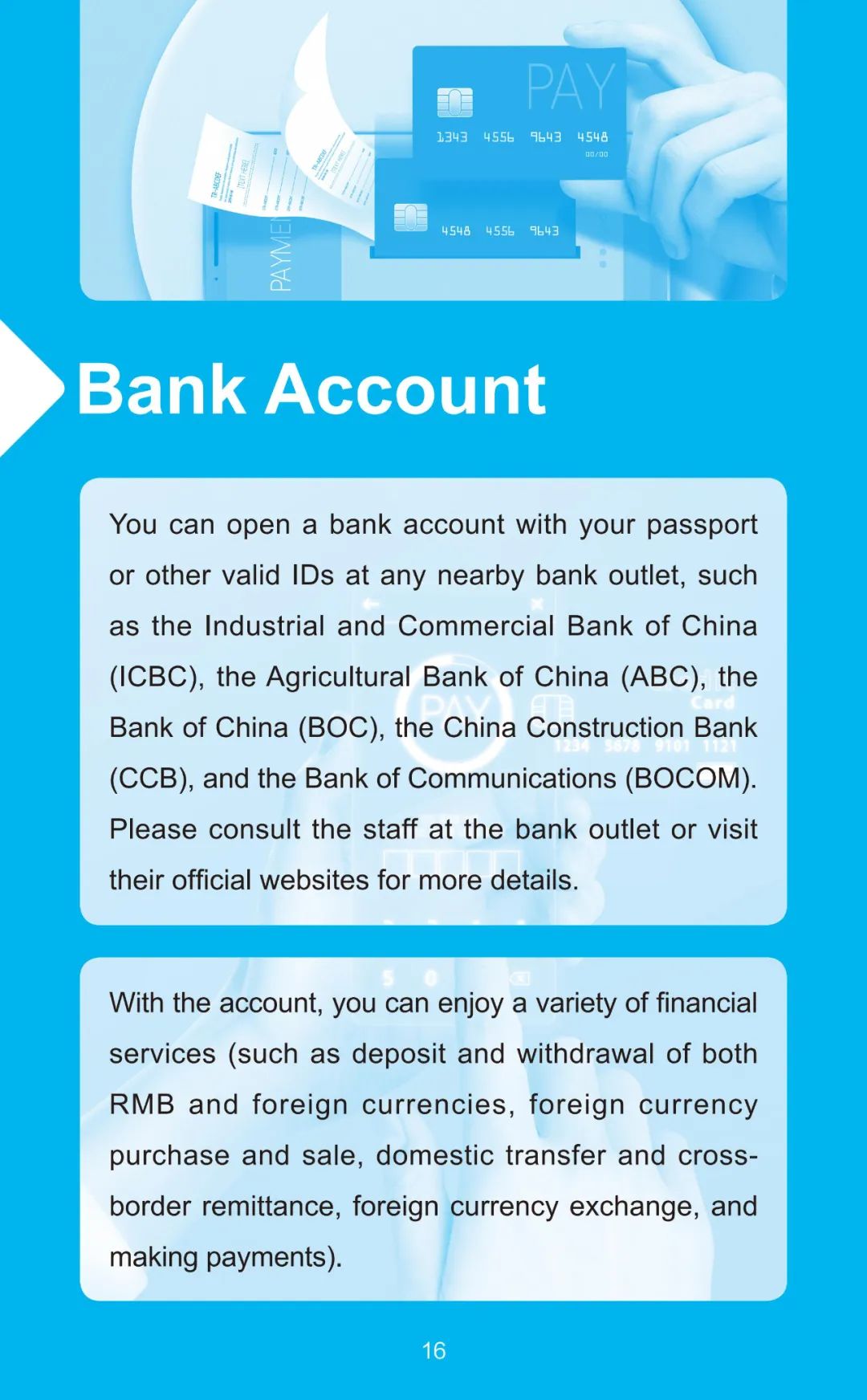 Welcome to China! Now, you have a number of payment options at your fingertips while in China, ranging from mobile payments to bank cards and cash. Please follow this guide to find out more.